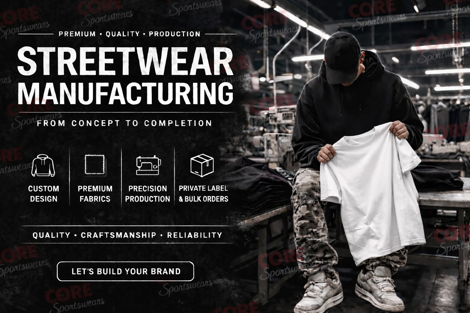 We are manufacturers and exporters of high-quality Sportswear & Streetwear products ranges. Our company produces custom designs and sizes as per customers requirements. We provide a full range of services from sample making, marking, grading, stitching and shipping. No order is too big or too small.